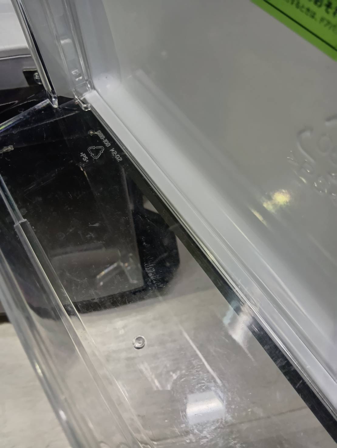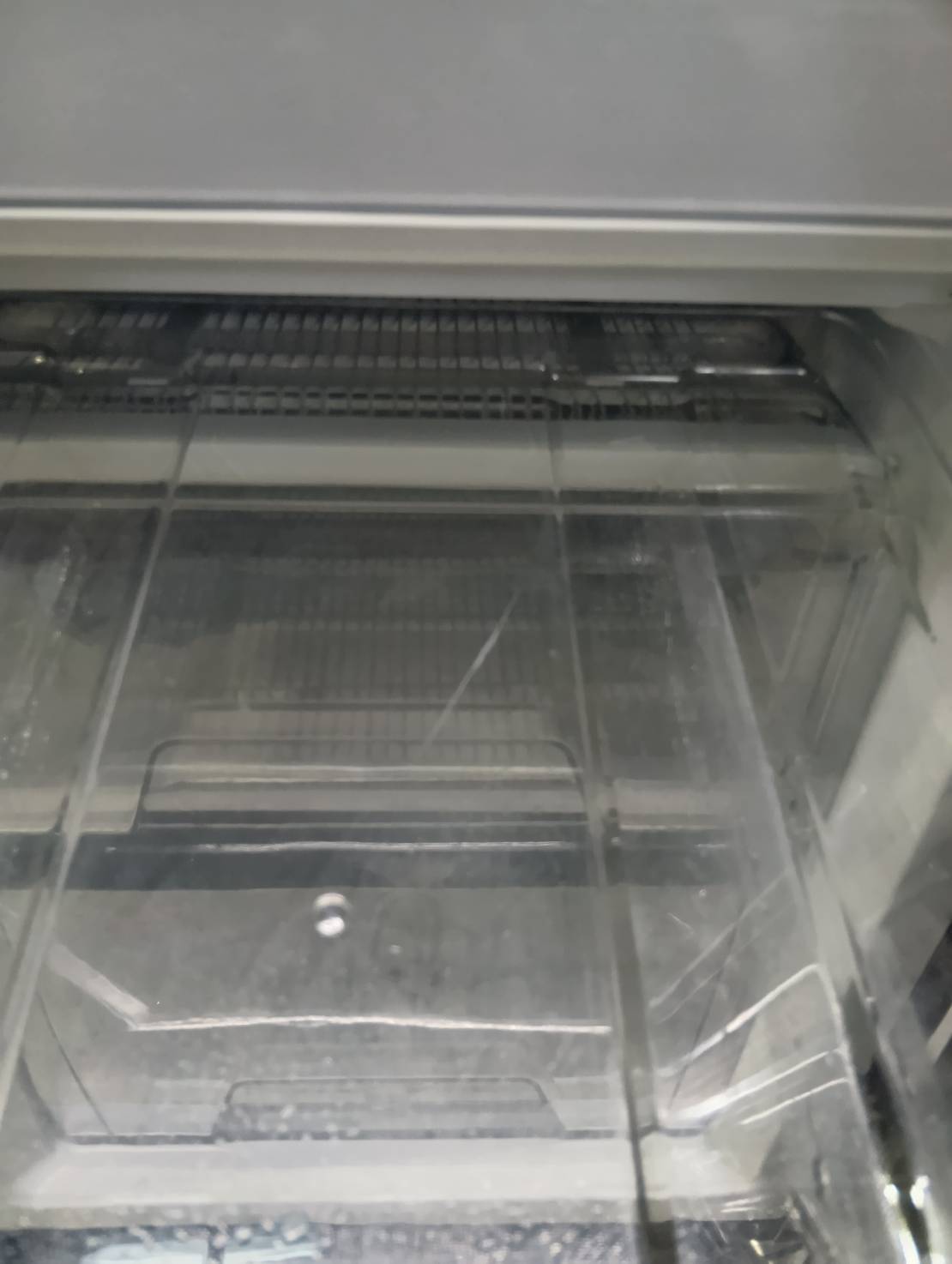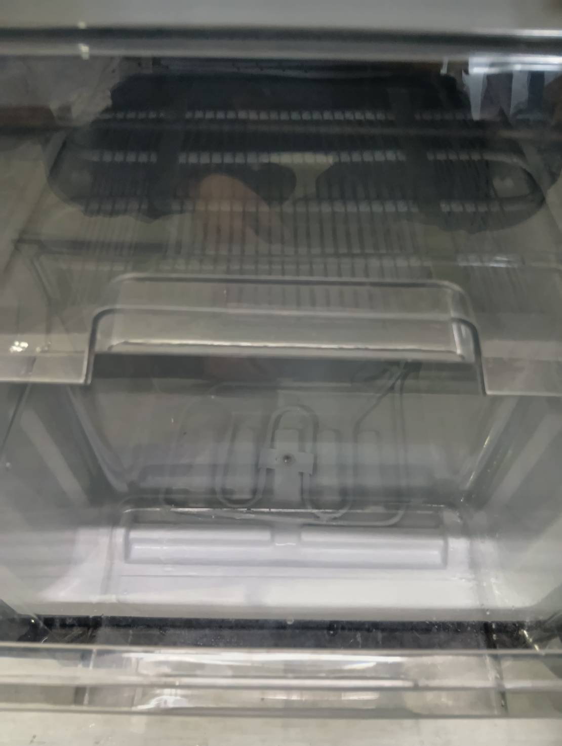 2列のドアポケットで小物から2Lペットボトルまでたっぷり収納でき、ガラス製の棚で拭き取りやすく、臭い移りも気にならない。。