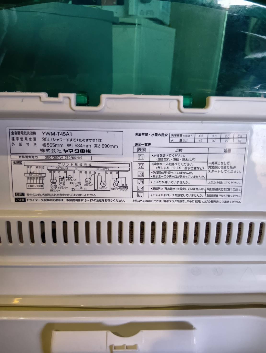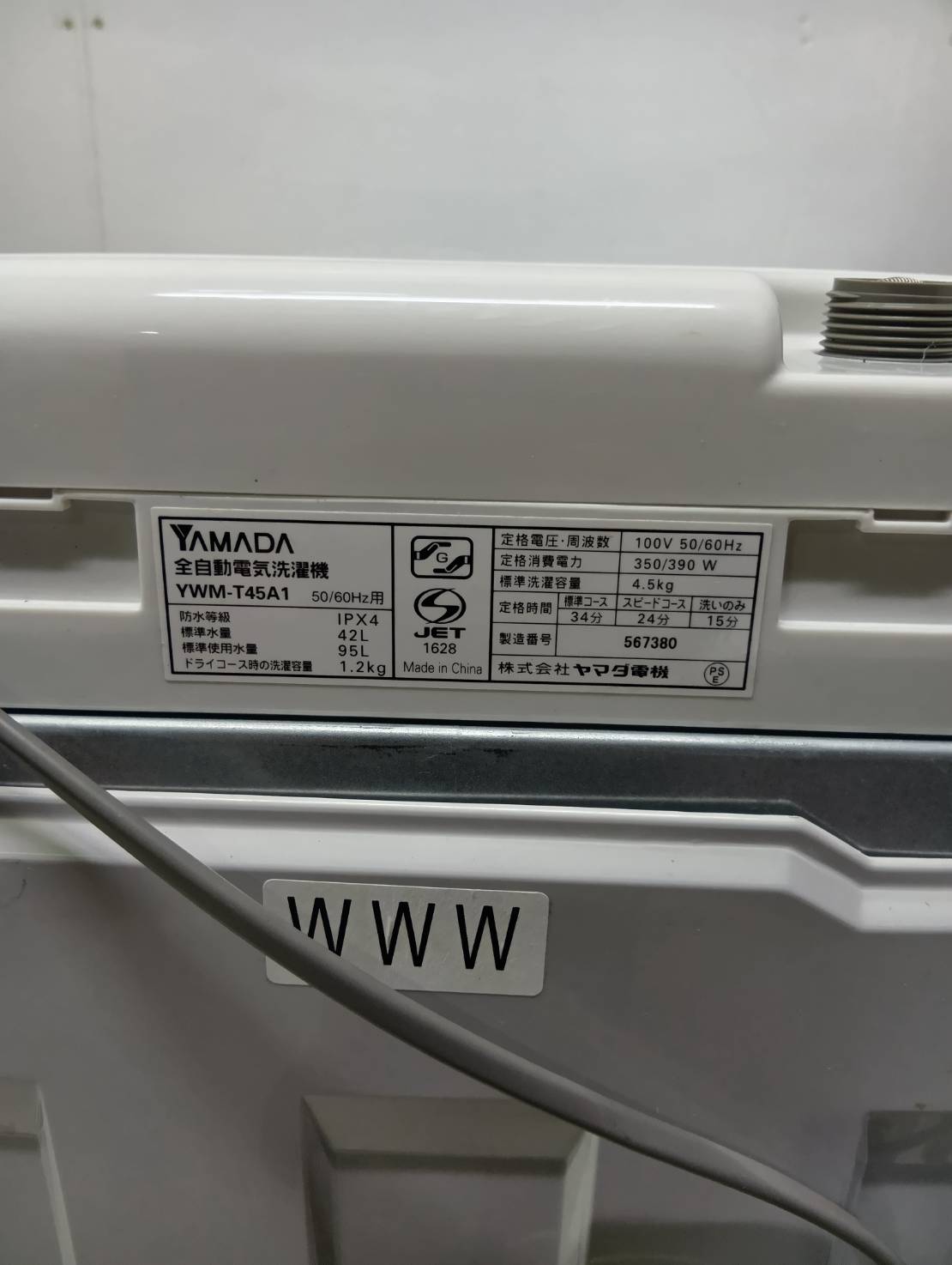YAMADA2018年製4.5Kg洗濯機 (※分解清掃不可)YWM-T45A1