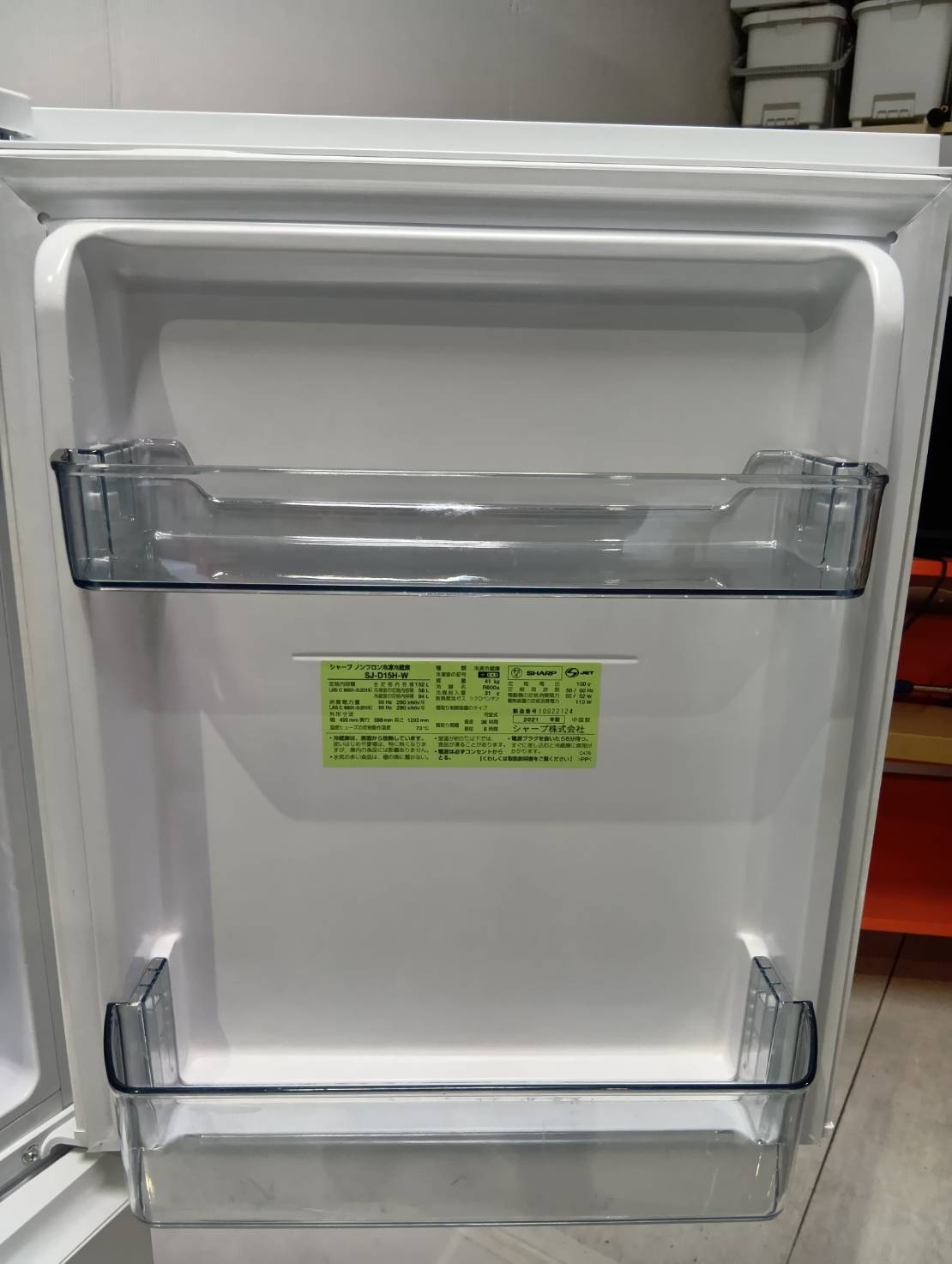 SHARP2021年製152L冷蔵庫 SJ-D15H-W