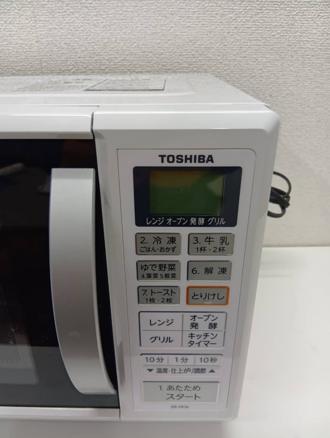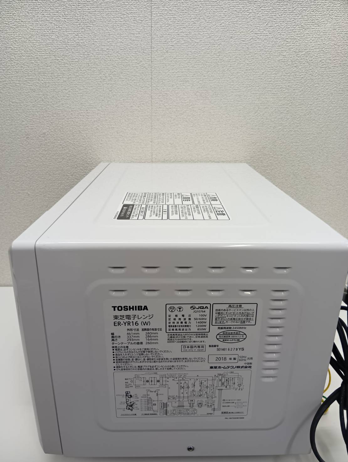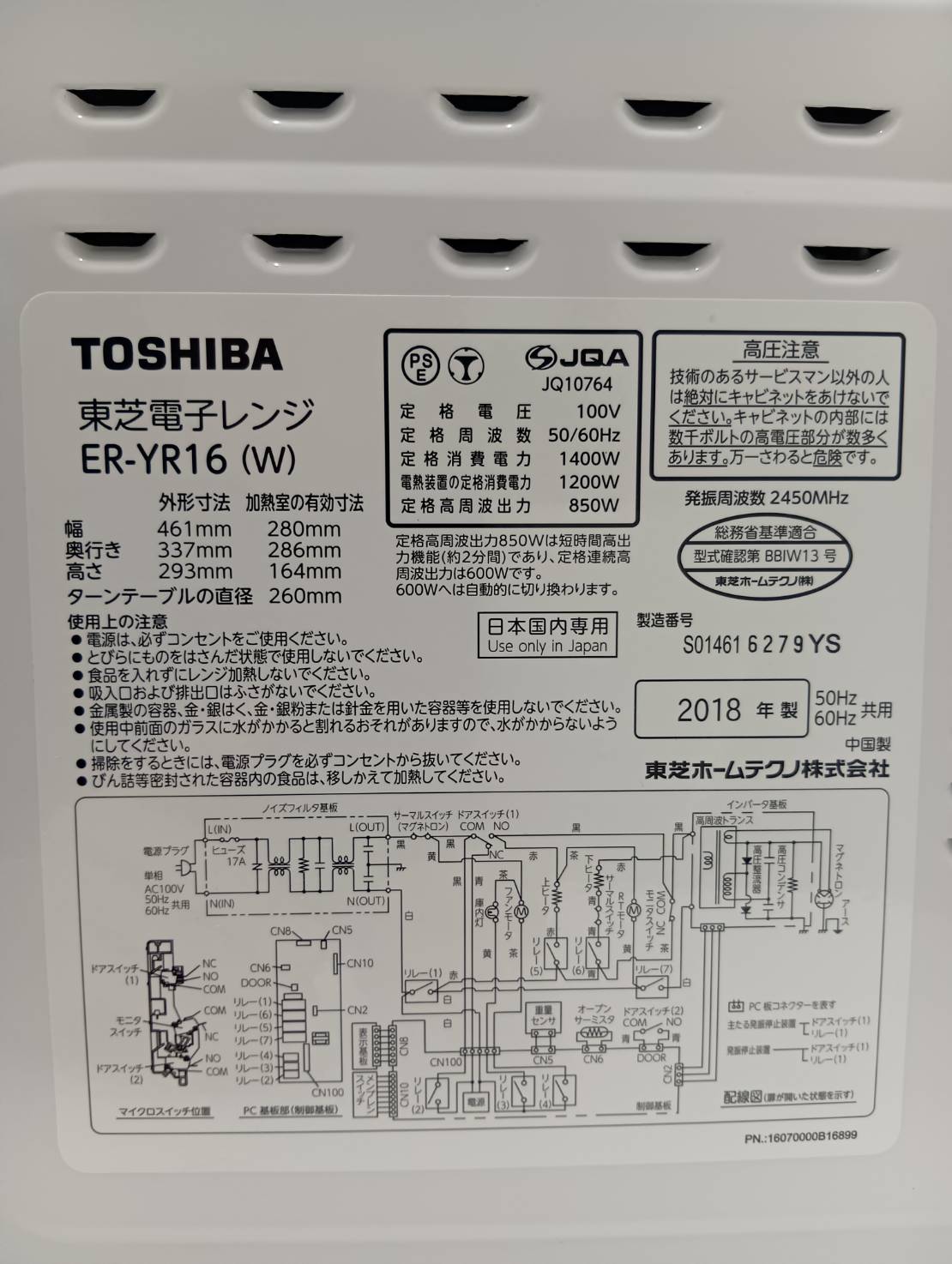 TOSHIBA2018年製オーブンレンジ 型番 ER-YR16 本体サイズ 幅*奥行*高さ 461*337*293㎜ 庫内サイズ 幅*奥行*高さ 280*286*164㎜ ターンテーブルの直径 260㎜ 動作確認 OK 評価ランク B- 【コンディションなど】 庫内にややダメージのある商品です。 【製品特徴】 スタンダードな機能のみ搭載したオーブンレンジ。「レンジ」「オーブン」「グリル」が使用可能。 「キッチンタイマー機能」も備える。 【保証期間】 商品到着から2カ月