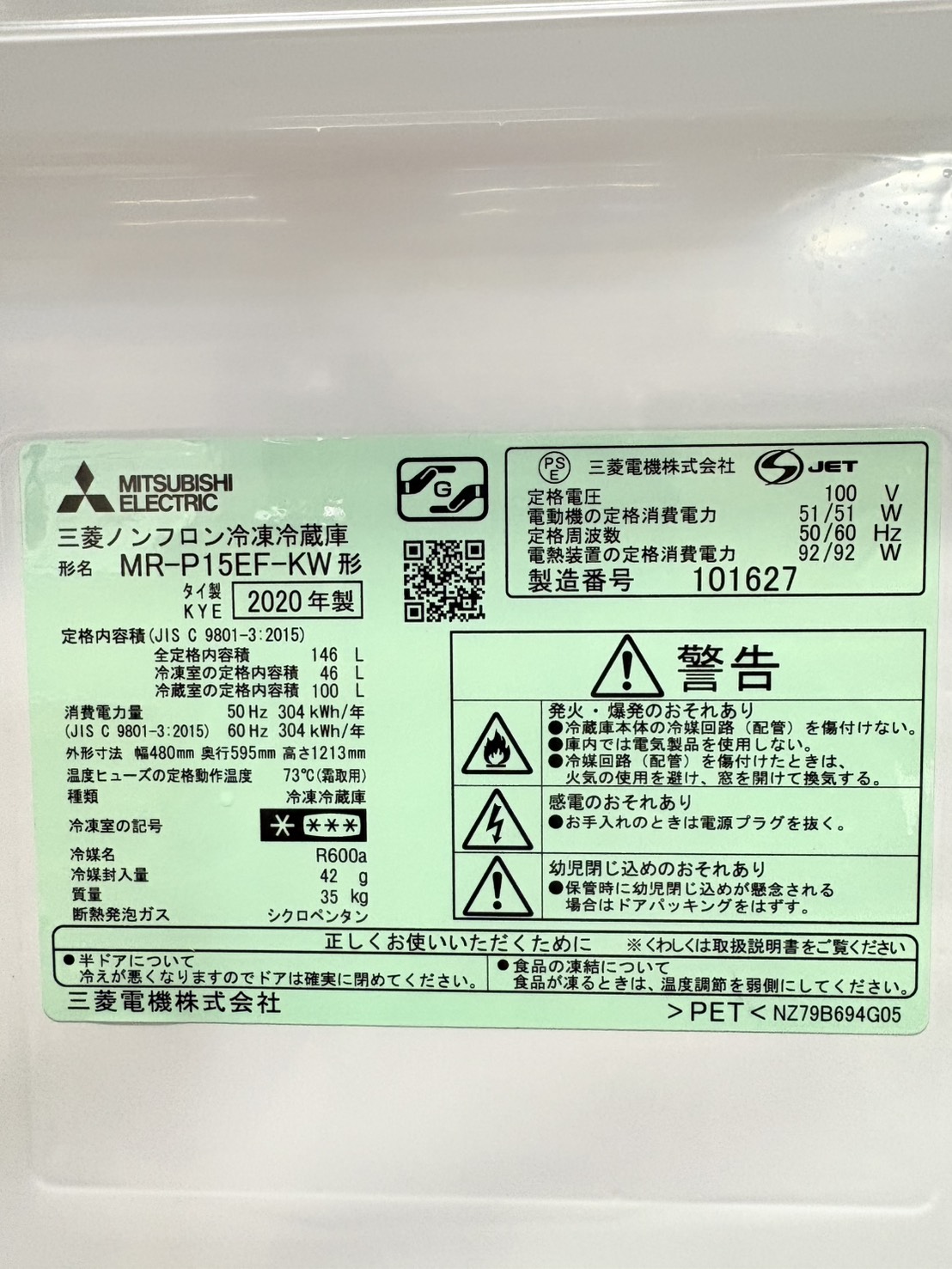 三菱電機2020年製146L冷蔵庫 MR-P15EF-KW