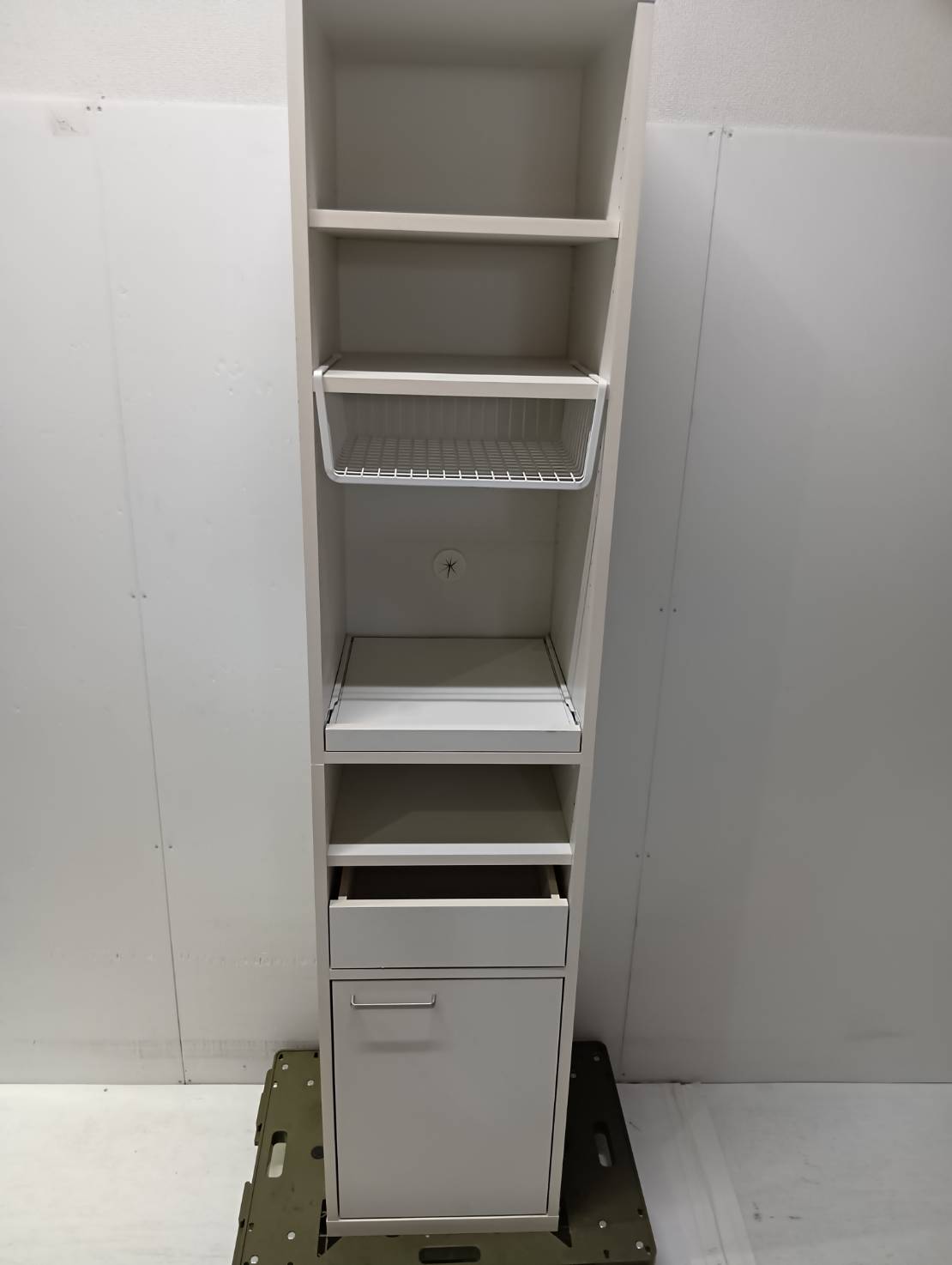 スライド棚付きスリムキッチンラック 幅*奥行*高さ 幅39×奥行39×高さ180cm 評価ランク B- 【コンデションなど】 棚の一部に変色があります。 【製品特徴】 炊飯器や食器、調味料等収納に便利な39*39㎝幅のスリムキッチンラックです。