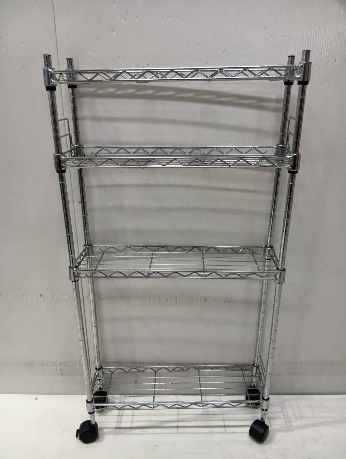 スリム4段メタルラック 幅*奥行*高さ 幅545×奥行13×高さ89cm 評価ランク B 【コンデションなど】 細かい傷とサビがあります。 【製品特徴】 奥行13㎝のスリムメタルラックです。キャスター付きなので隙間収納にご活用ください。