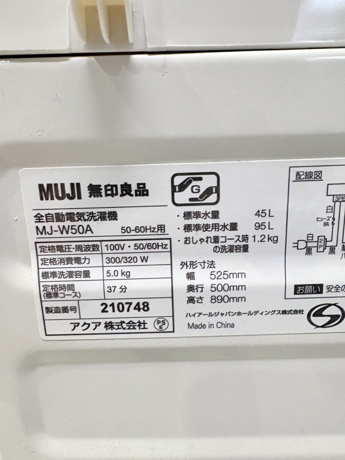 無印2020年製5.0㎏洗濯機