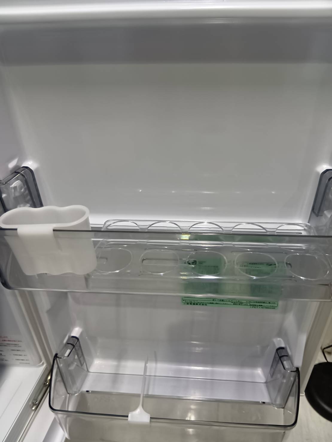 「大容量ドアポケット」を備え、上段は500mLペットボトル10本、下段は2Lペットボトルが3本入る。加工食品の保存に便利な「低温ケース」を装備。