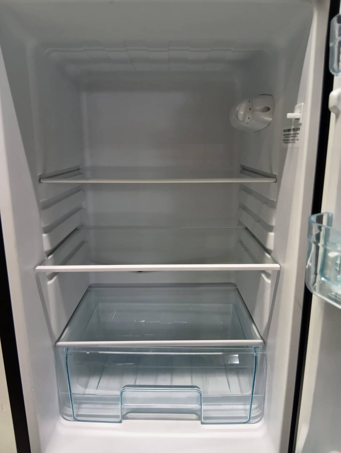 スリムで背の高い冷蔵庫です。冷凍室は引き出しトレー式となっており、冷凍食品のストックと分別が楽です。霜取り機能は搭載されておりません。直冷式の冷蔵庫となります。