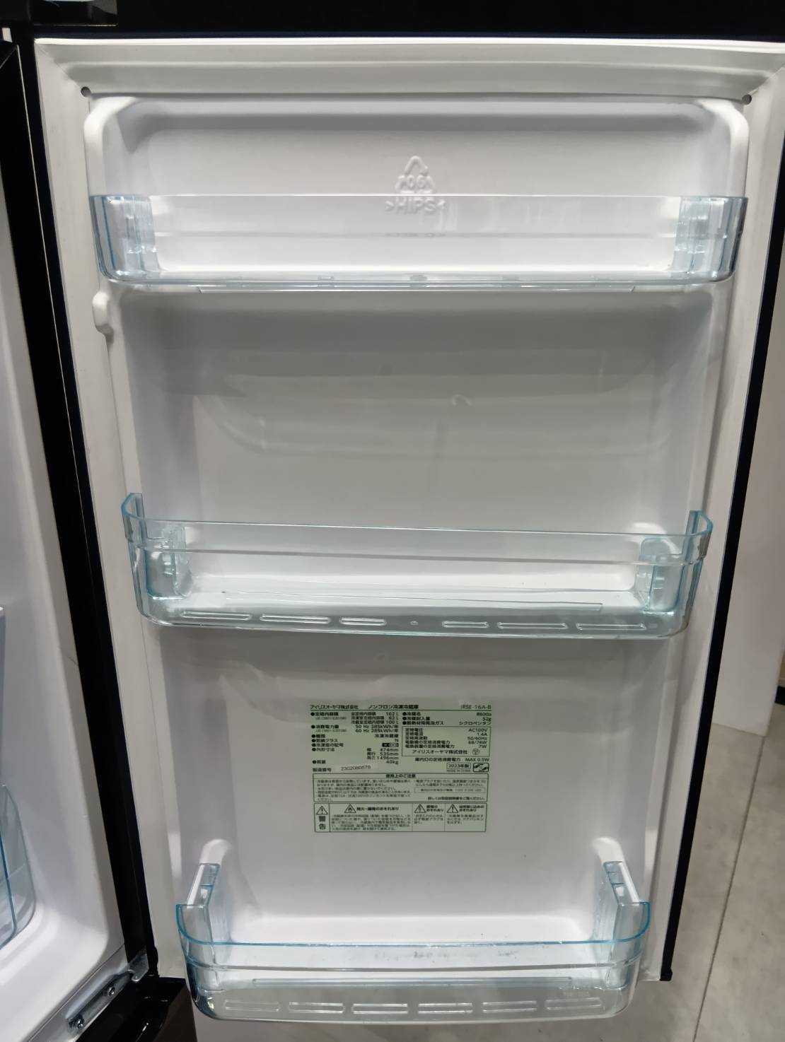 アイリス2023年製162L冷蔵庫 IRSE-16A-B
