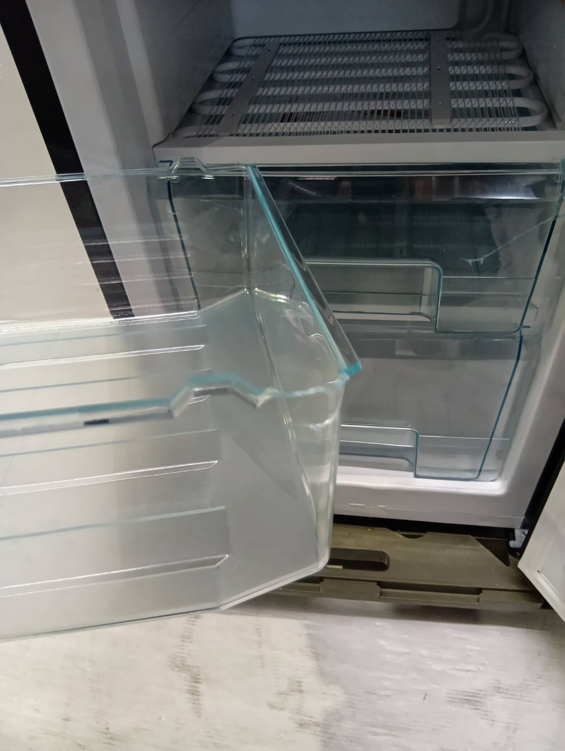 冷蔵室トレー2つにクラックがあります。