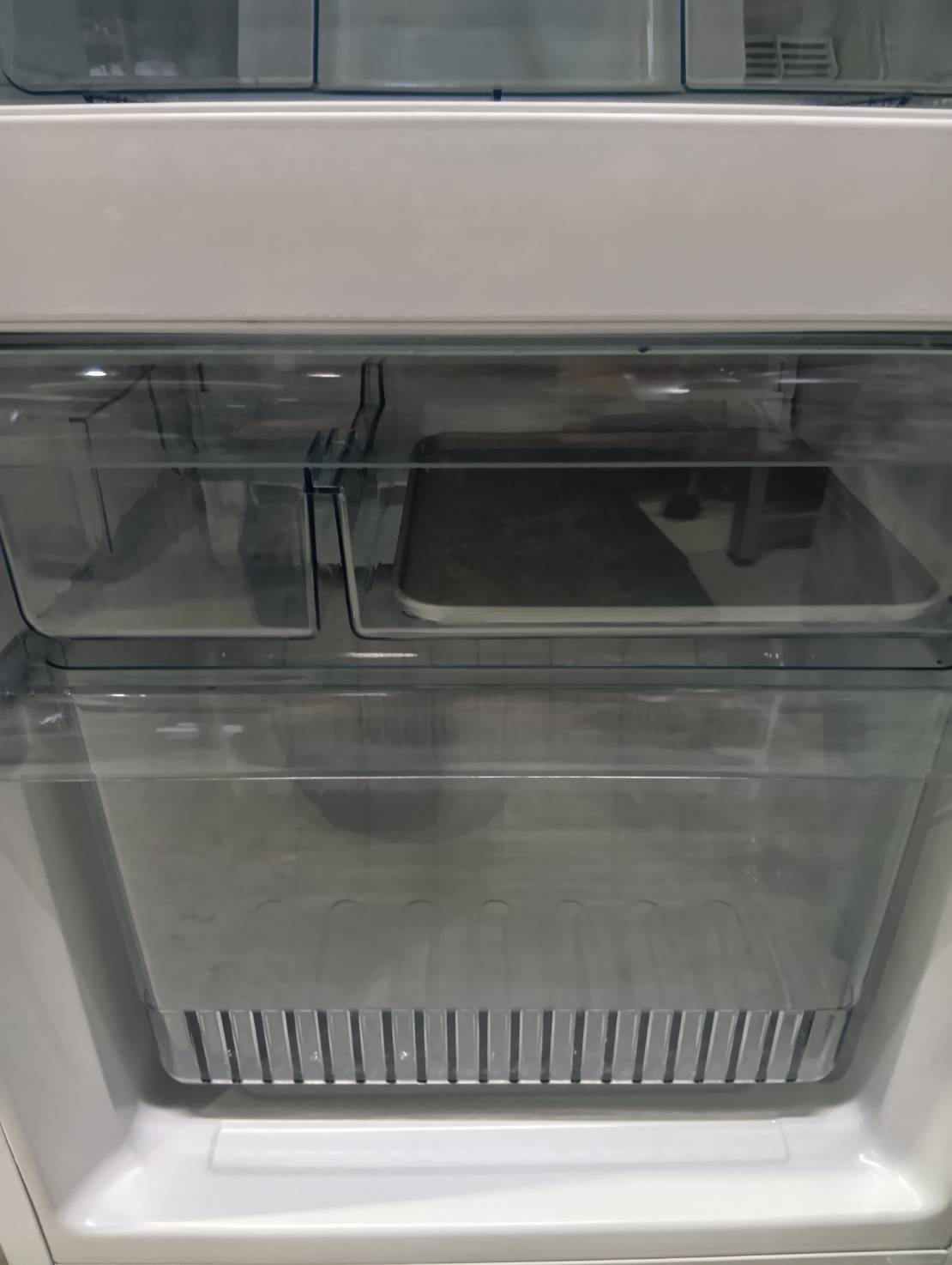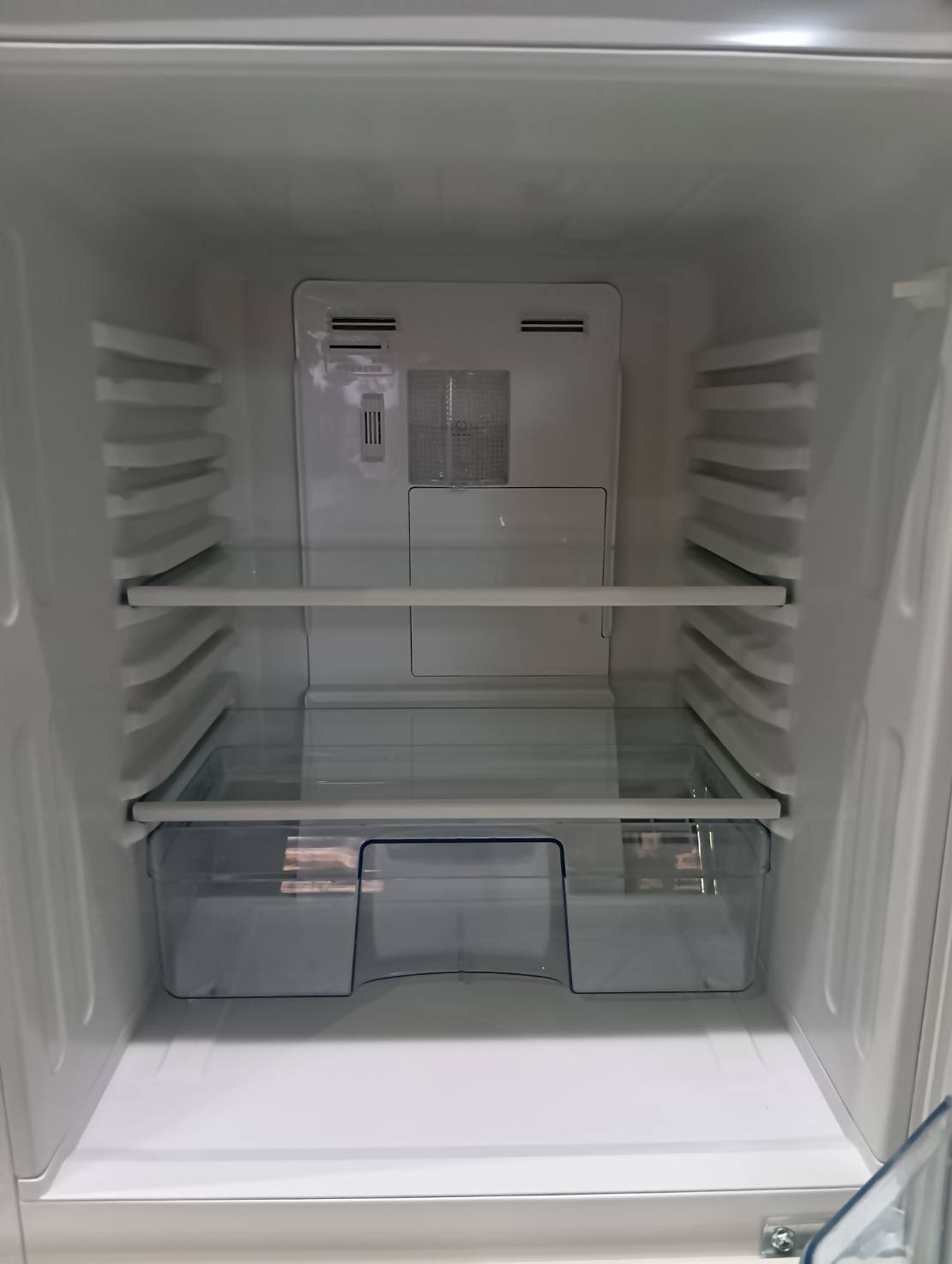 霜取りの必要がない強制循環式冷蔵庫。小型の110Lサイズ。電子レンジを上にのせて丁度良い108㎝高さの冷蔵庫。