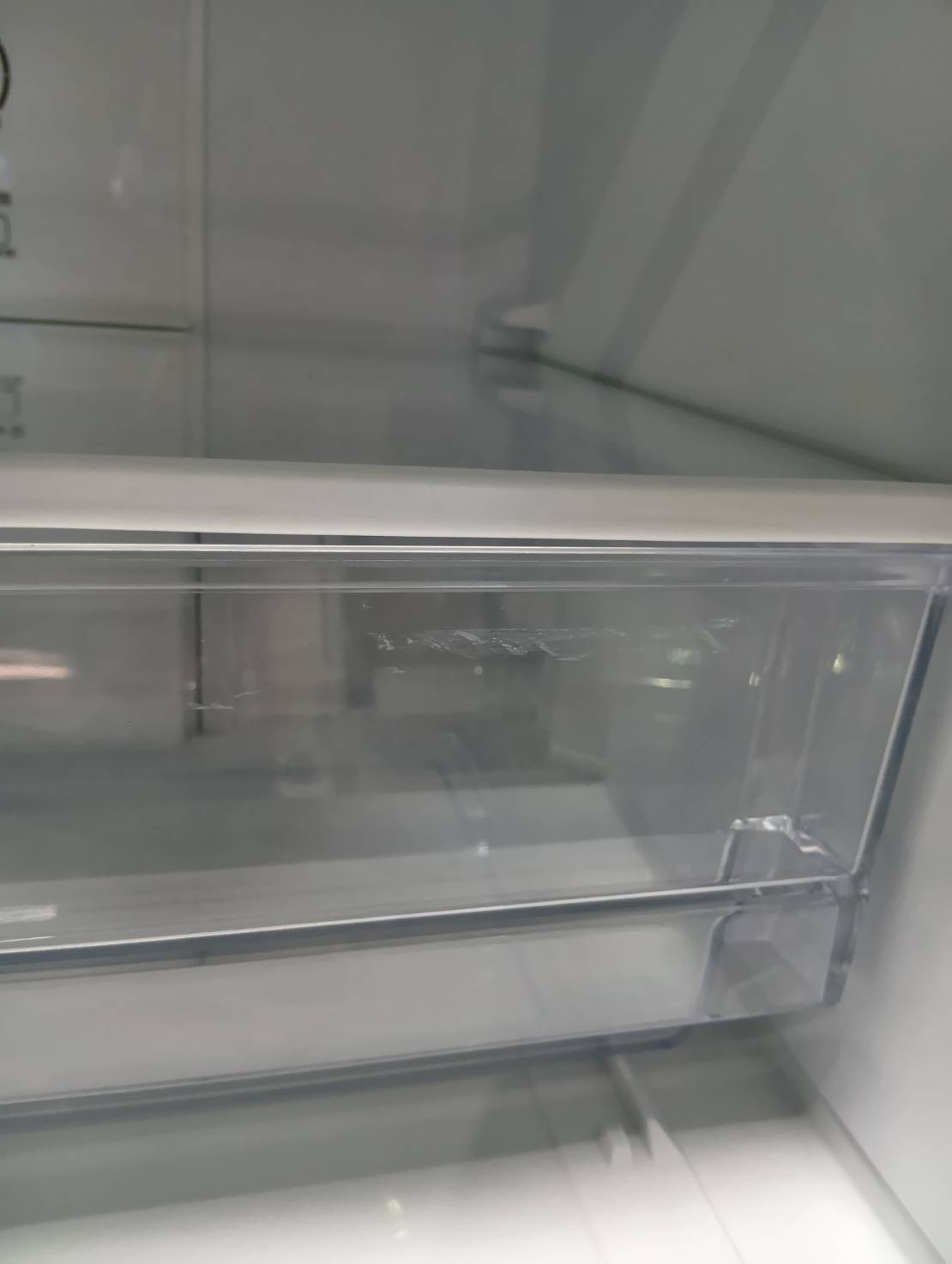 冷蔵室扉に傷があります。天板に変色があります。
