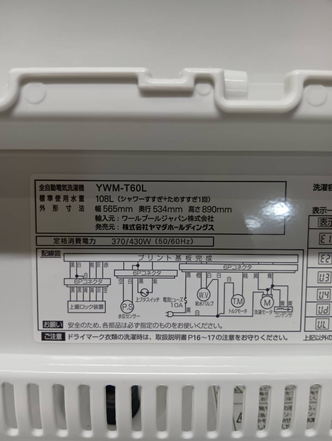 YAMADA2024年製6.0Kg洗濯機