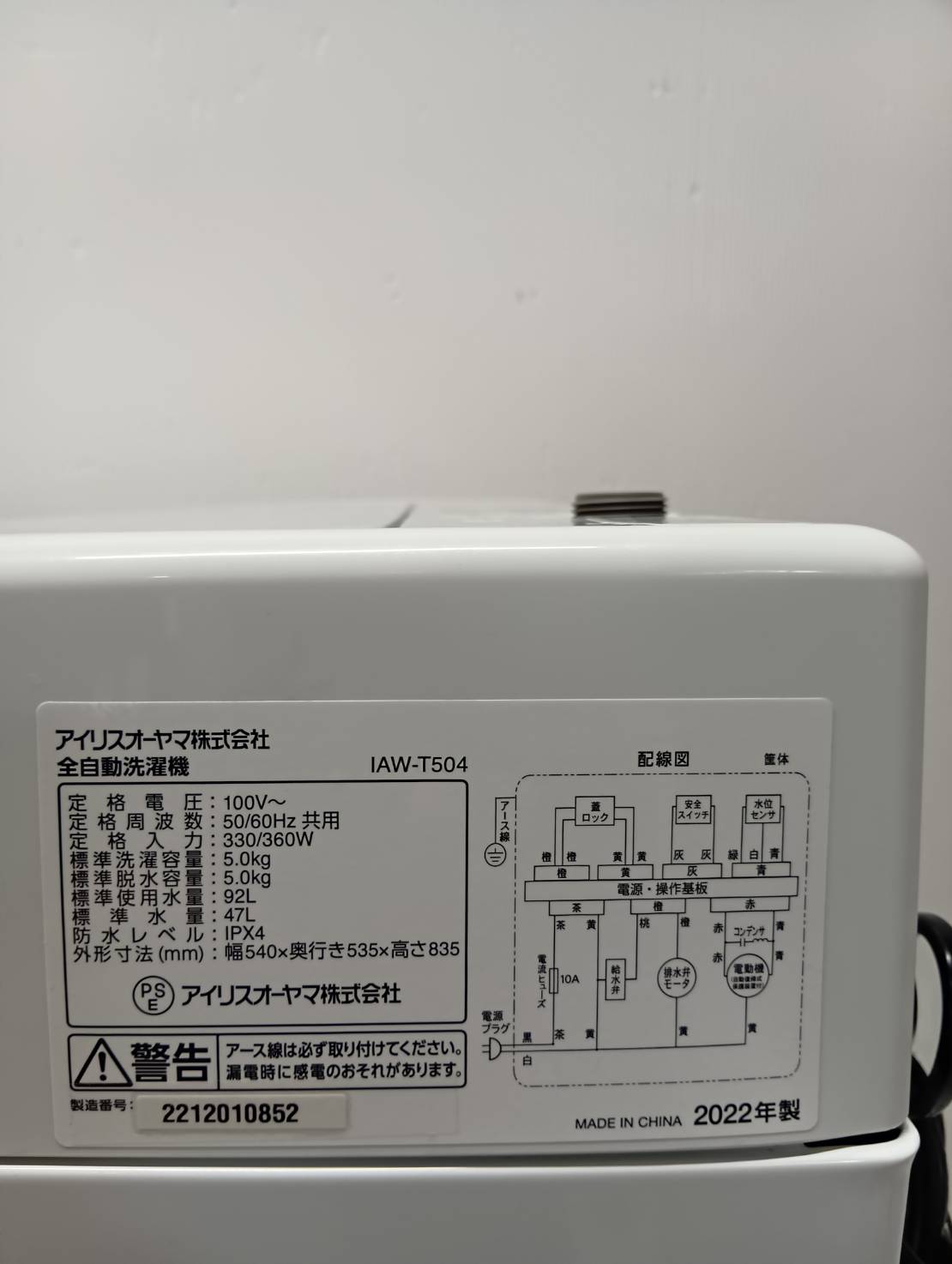 アイリス2022年製5.0Kg洗濯機