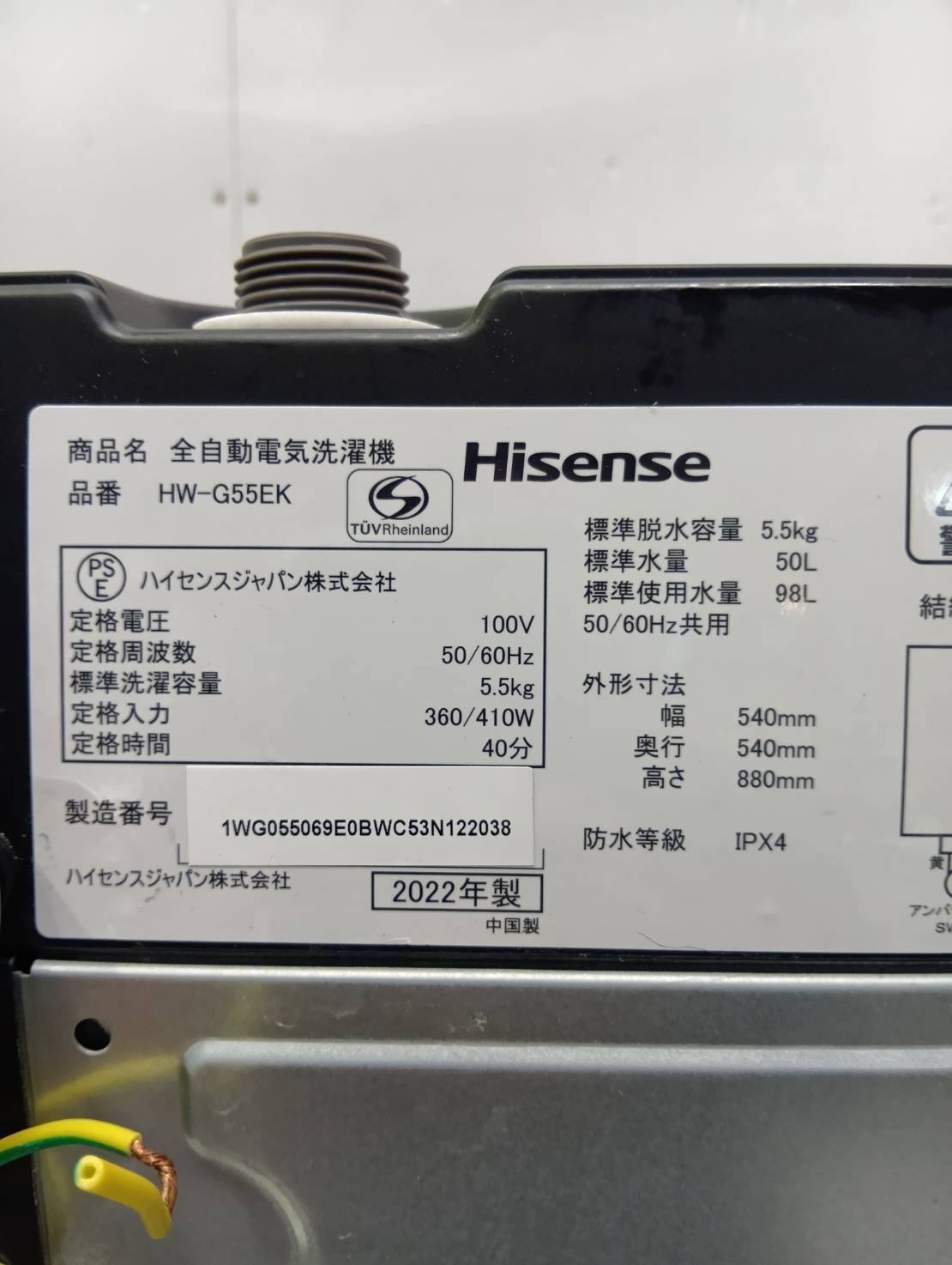 Hisense2022年製5.5Kg洗濯機