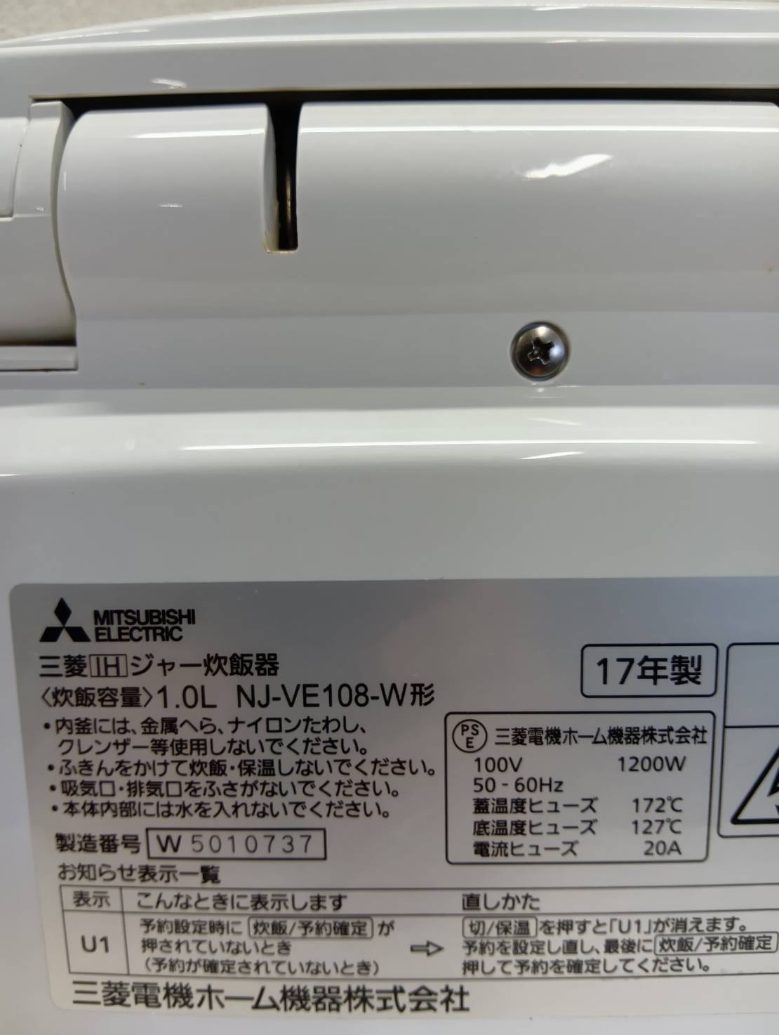 三菱電機2017年製5.5合炊飯器 NJ-VE108