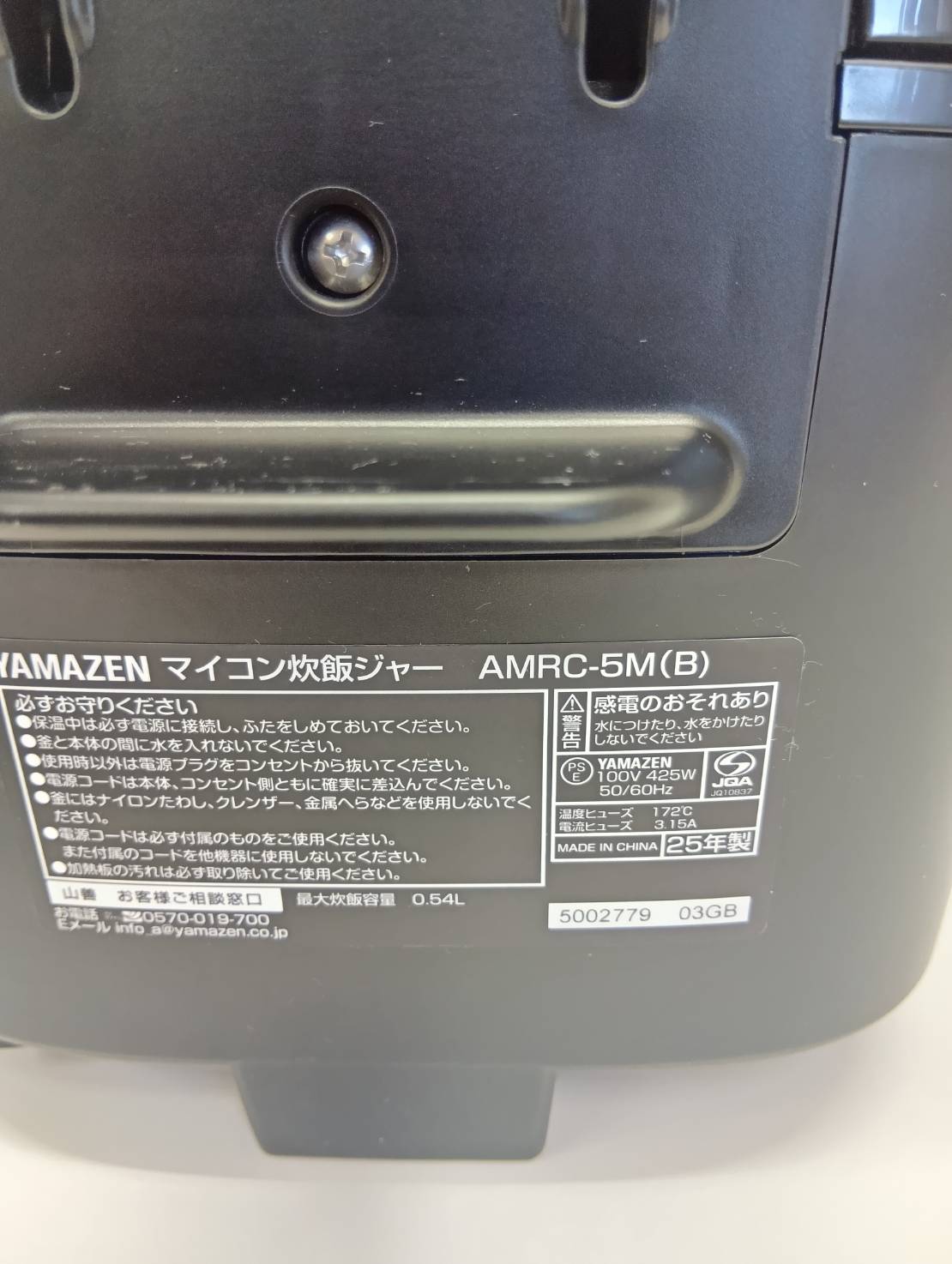 山善2025年製3合炊飯器 型番 AMRC-5M 寸法 29奥行き x 24幅 x 20.4高さ cm 炊飯量 3合 炊飯方式 マイコン式 動作確認 OK 評価ランク A 【コンデションなど】 使用感も少なく目立ったダメージもございません。 【製品特徴】 スタイリッシュなblackカラーで操作しやすいフォルムのマイコン式炊飯器。スタンダードな機能のみ搭載した3合炊飯器です。 【保証期間】 商品到着から2カ月