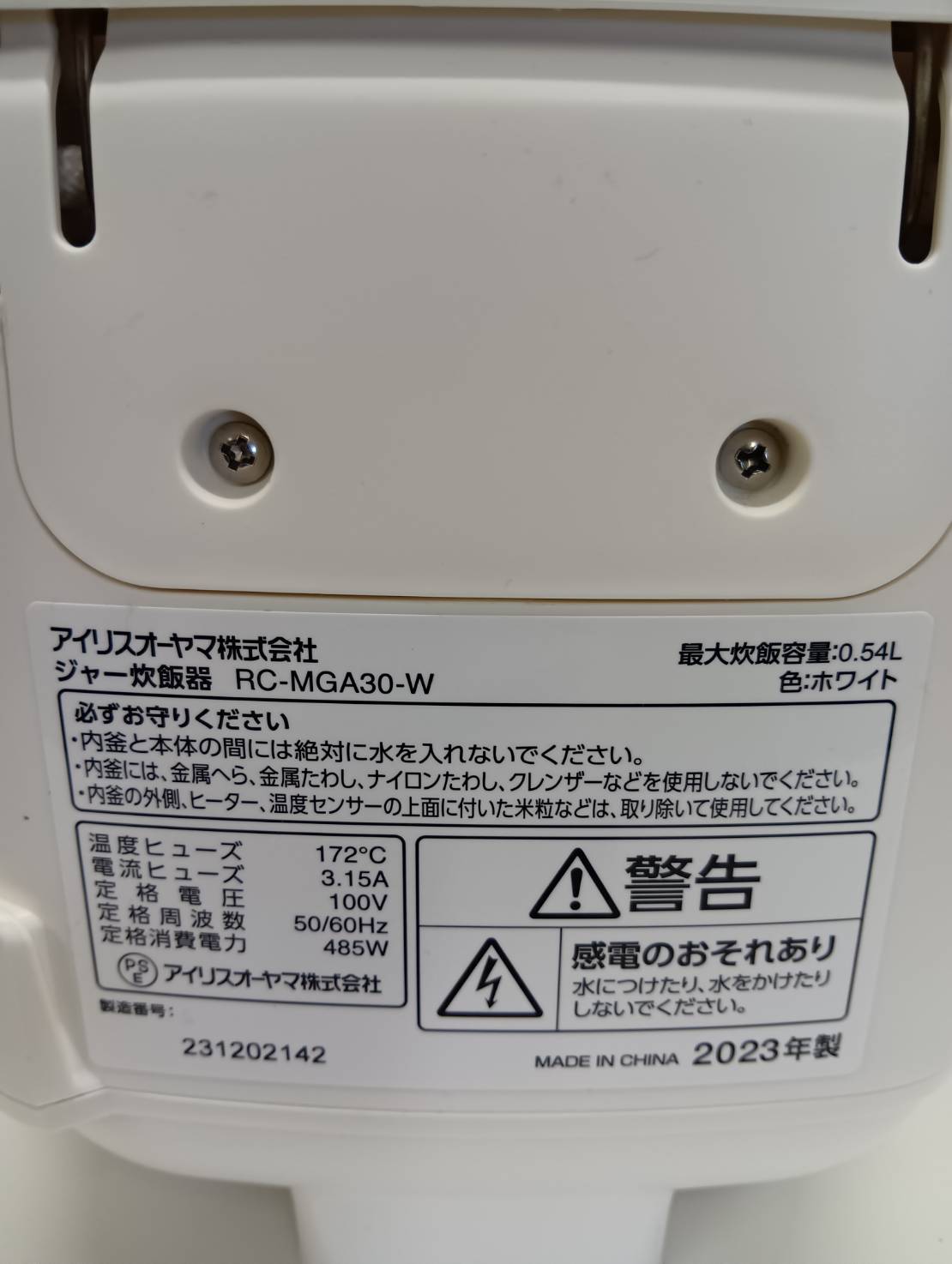 アイリス2023年製3合炊飯器 RC-MGA30-W