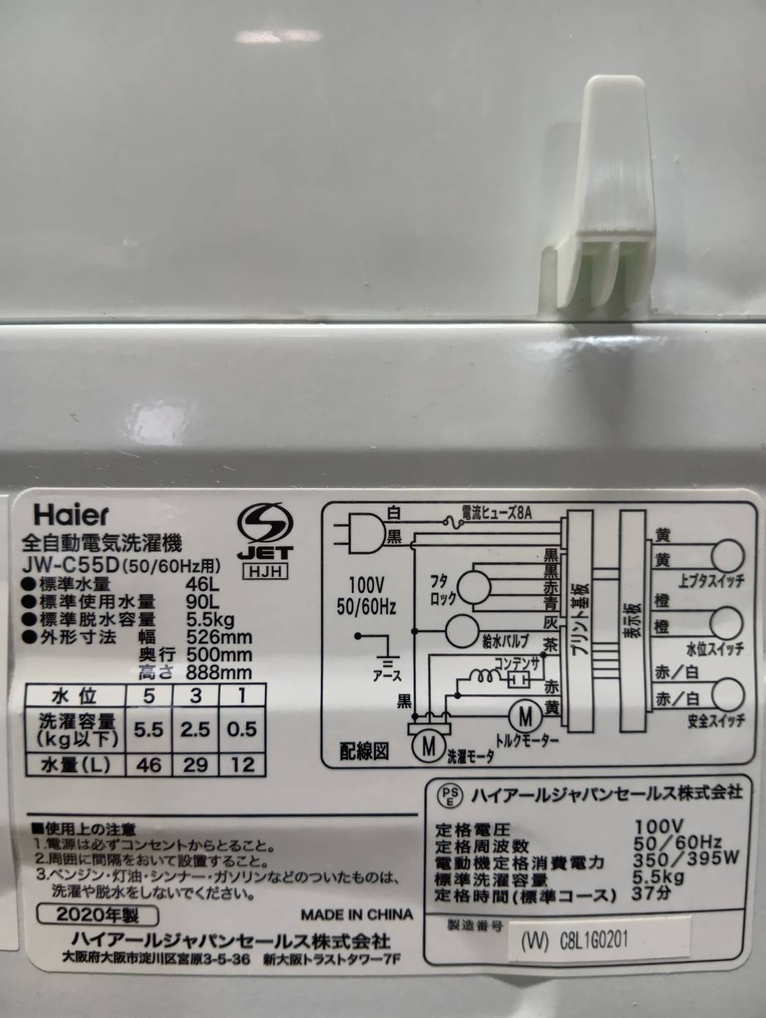 Haier2020年製5.5Kg洗濯機 JW-C55D