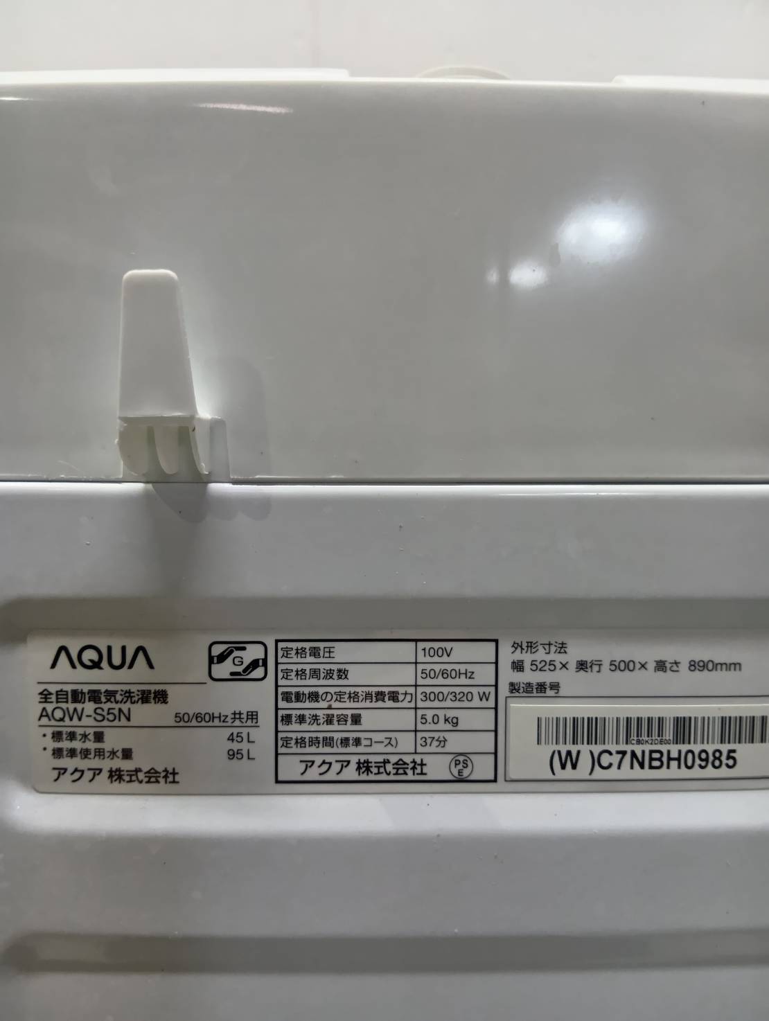 AQUA2022年製5.0Kg洗濯機 AQW-S5N
