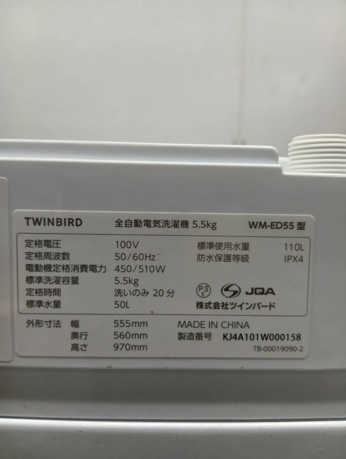 TWINBIRD2024年製5.5Kg洗濯機 WM-ED55